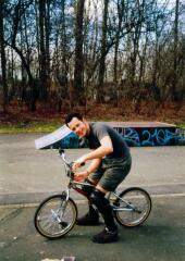 und, wenn ich mal keine Musik mache ( was selten vorkommt! ), hole ich mir Schürfwunden, Hämatome und Kratzer beim Bmx'sen. Jetzt, wo das Wetter wieder wärmer wird, eine beliebte Freizeitbeschäftigung